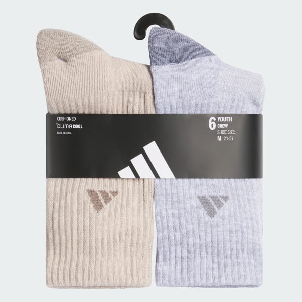 Working out to hanging out, they'll be comfortable nonstop when they're wearing these youth adidas crew socks. Airy mesh helps keep their feet cool. Extra cushioning and extra-strong details in the heel and toe mean these socks will last longer.