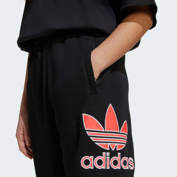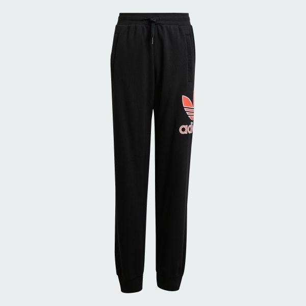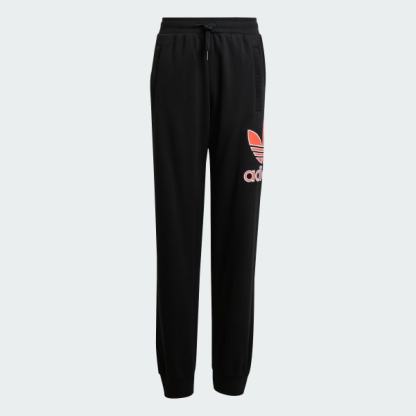 These juniors' adidas sweat pants are all about bold style and casual comfort. The loose shape and soft cotton fabric keep you cozy on laid-back days while a large Trefoil logo on one leg adds '90s-inspired attitude. Pair them with a graphic tee and your favorite kicks for an outfit that's equal parts retro and modern.