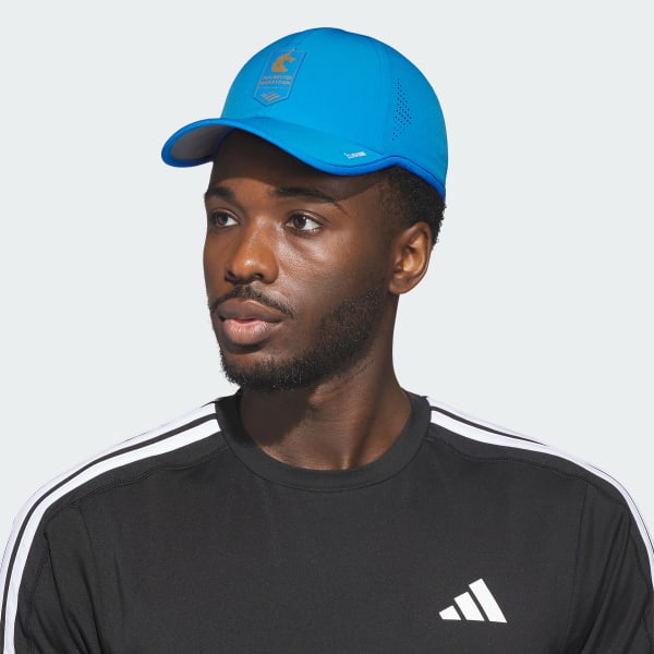 This men's hat from adidas is super lightweight and built for runners. It features CLIMACOOL technology to manage moisture and perforations for outstanding ventilation. A hook-and-loop back closure helps you adjust the fit and a logo graphic on the front celebrates race day.