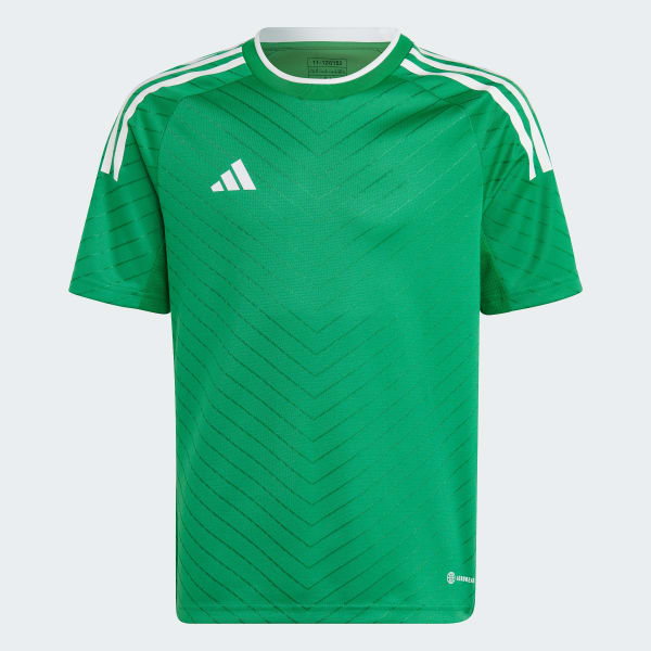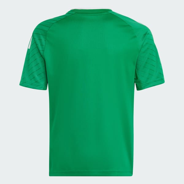 Stay dry when the action heats up on the soccer pitch. This juniors' match day jersey from adidas features AEROREADY to keep you comfortable all game long. Signature 3-Stripes on the shoulders and a 3 Bar Logo give it a classic finish.Made with 100% recycled materials, this product represents just one of our solutions to help end plastic waste.