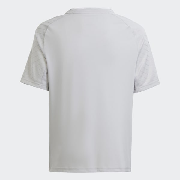 Stay dry when the action heats up on the soccer pitch. This juniors' match day jersey from adidas features AEROREADY to keep you comfortable all game long. Signature 3-Stripes on the shoulders and a 3 Bar Logo give it a classic finish.Made with 100% recycled materials, this product represents just one of our solutions to help end plastic waste.