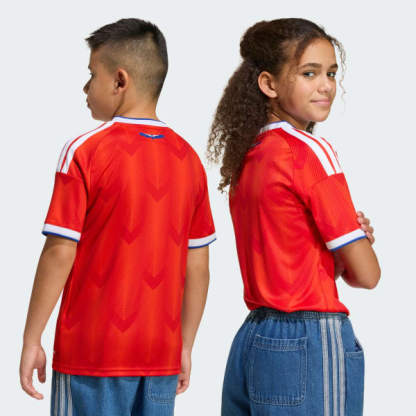 The Chile 26 Home Jersey draws unique inspiration from the Andean condor—Chile's symbol of unity and strength. A design that honors national soccer heritage while looking to inspire the next generation.Crafted with adidas' Climacool technology uses materials that wick and manage sweat quickly, delivering performance-driven comfort built for everyday wear.Finished with the Chilean team crest, embroidered on the chest, and paired with the iconic adidas logo, for a look that delivers a statement of pride for young fans ready to dream big.