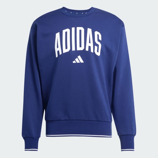 This adidas sweatshirt is the definition of casual, easygoing style. It's made from cotton and polyester fleece that feels soft and cozy from the first moment you pull it on. The arched adidas logo on the chest is reminiscent of collegiate-style apparel.