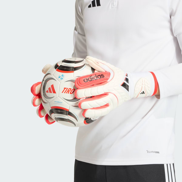 Inspired by adidas's rich soccer heritage, the Copa Goalkeeper Glove Pro Fingersave blends classic design with modern engineering to aid performance on the pitch.With URG 2.0 technology, these gloves offer grip and shock absorption, making them suitable for a variety of surfaces and conditions. The latex wrist strap with stretch function provides a customizable fit.The non-exchangeable Fingersave spines stiffen and resist pressure when pushed backward, aiding effective ball deflection. The negative cut offers a snug fit for comfort and control.Whether you're diving for a save or punching the ball away, these comfortable, customizable gloves help you embrace your role with confidence.