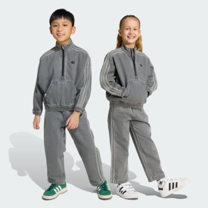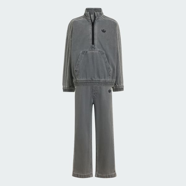 This kids' denim set from adidas fuses iconic adidas DNA with a staple fabrication. The loose shape creates a laid-back look and feel, perfect for everyday adventures. Signature 3-Stripes down the arms and legs and an adidas Trefoil logo on the chest provide the finishing touches. Let your little one make a stylish statement in this must-have set.