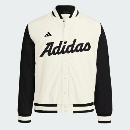 This classic-look baseball coaches jacket from adidas is made from plain weave fabric that feels smooth and comfortable. Classic details include ribbing on the collar and cuffs and a dropped hem that makes it the perfect partner for cheering on your team from the dugout. A stylized adidas graphic on the front signs off the look.