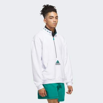 Step up your game on or off the course in this golf quarter zip. Part of our Best of the Best collection and inspired by adidas EQT, it reimagines the iconic 90s golf sweater with a heavyweight cotton blend with a suede feel and looser, boxier fit. It's golf-ready wear made for the streets of NYC.