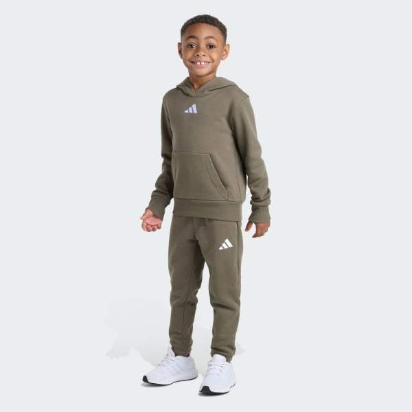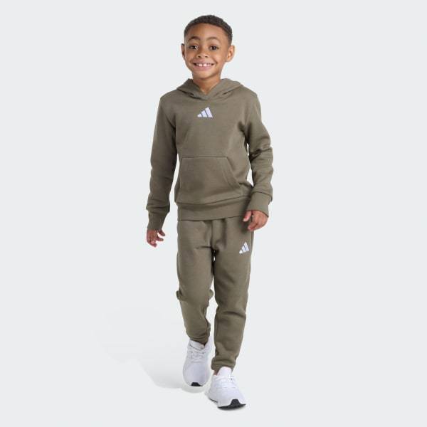 Everyday adventures are a fun experience with the 2-Piece Long Sleeve Pullover Hoodie and Joggers Essential Small Logo Fleece Set. Composed of a cozy hoodie and matching sweatpants, the set is designed to keep up with active kids and their busy schedules, from sports practice to school and family outings.Crafted from soft fleece fabric for warmth, the set is created in a regular fit that strikes a comfortable balance between loose and snug. The ribbed cuffs and hem on the hoodie help to keep it in place, while the kangaroo pocket offers handy storage and helps to keep your child’s hands warm.The sweatpants feature an elastic waist with drawstring for a secure, adjustable fit, so your child can move around freely and easily. Subtle adidas branding on the center chest and left thigh add a sporty touch to their look.adidas combines the energy and optimism of sport in this set. Machine washable, it is built to handle the mess and excitement of childhood.
