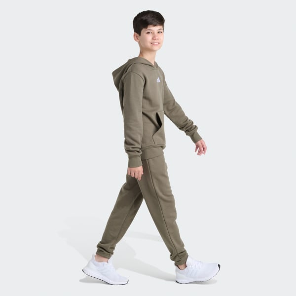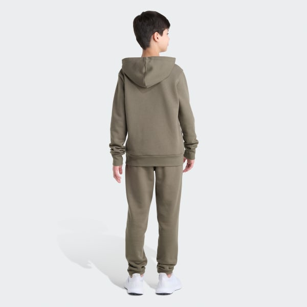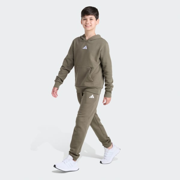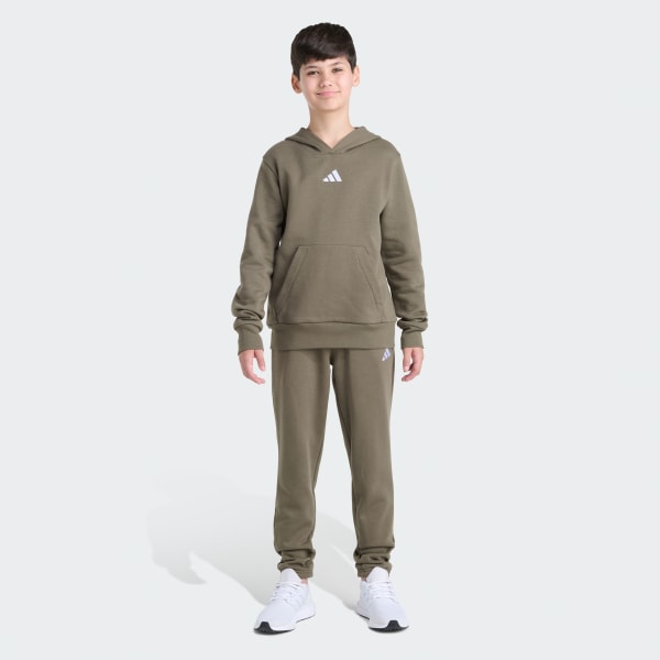 Everyday adventures call for comfort that keeps up. The 2-Piece Long Sleeve Pullover Hoodie and Joggers Essential Small Logo Fleece Set delivers a classic look with a bold, optimistic spirit, suitable for school days, playtime, and everything in between.This adidas set includes a soft fleece hoodie and matching sweatpants, designed to keep kids warm and ready for action, whether they're heading out for recess or relaxing at home. The regular fit strikes a balance between relaxed and snug, giving kids room to move without feeling restricted.Ribbed cuffs and hem on the hoodie keep the piece in place during active moments, while the kangaroo pocket offers a cozy spot for hands. The sweatpants feature an elastic waist with a drawstring for a secure, adjustable fit that grows with them.Crafted from a durable blend, this set is machine washable for easy care—because parents need convenience, too. With adidas branding and a timeless design, this set is ready for every season and every adventure.
