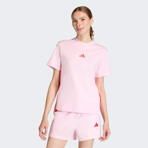 Effortless style meets everyday comfort in this adidas tee. The soft fabric feels great against your skin whether you're running errands or lounging at home. Classic 3-Stripes down the sleeves add a sporty touch that's signature adidas. Pair it with your favorite jeans or joggers for a look that's always in fashion.