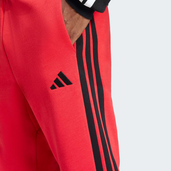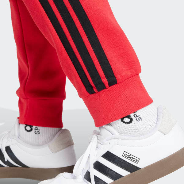 You can rock a sporty look every day in these adidas pants. They're made from soft fleece with ribbed cuffs that seal in warmth. Iconic 3-Stripes down the sides give them an athletic attitude.By choosing recycled, we are able to reuse materials that have already been created, which helps to reduce waste. Renewable materials choices will help us to remove our reliance on finite resources. Our products made with a blend of recycled and renewable materials feature at least 70% total of these materials.