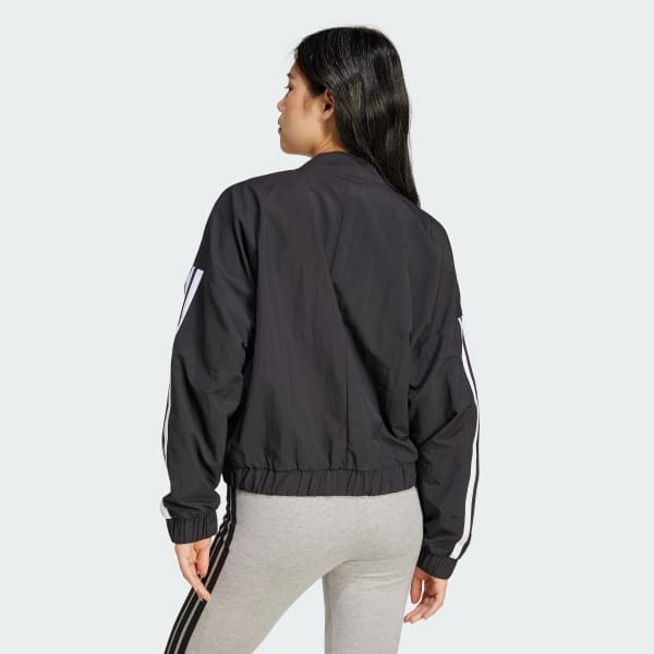 This adidas bomber jacket is an essential addition to any fashion-forward wardrobe. Paired with jeans and a tee or layered over a dress, its classic silhouette and sporty 3-Stripes down the sleeves make an impact. The woven material is lightweight yet durable, perfect for transitional weather or when you want an extra layer.This product is made with 100% recycled materials. By reusing materials that have already been created, we help to reduce waste and our reliance on finite resources and reduce the footprint of the products we make.