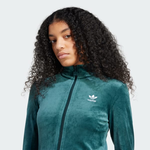 This adidas track top proves that comfort and style can coexist. The velvet build is soft and plush, and the slim fit hugs the body for a flattering look. Whether you're staying in or going out, this full-zip top has you covered.