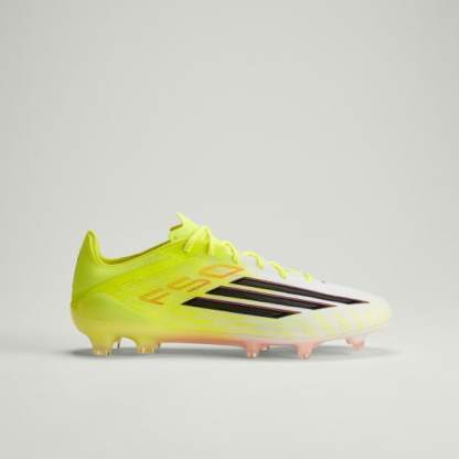The F50 Elite Firm Ground soccer cleats are crafted for those who live for speed on the field. With a refreshed upper graphic and precision engineering, they offer the right mix of standout style and performance.The Fibertouch upper features an engineered material package offering support and soft feel with strategically placed 3D lines. The Sprintweb provides high-definition 3D texture for enhanced ball contact especially when dribbling at high speeds.The Compression Fit Tunnel Tongue adapts to your foot, with TPU reinforcements strategically placed for enhanced fit experience and lockdown. The Sprintframe 360 outsole, with its anatomically designed coring structure for midfoot stiffening and a combination of bladed and semi-conical studs, offers acceleration and speed in all directions.The printed adidas 3-Stripes and F50 logo add the finishing touch to this pair. Blending functionality and style, these soccer shoes are a smart addition to your gear.