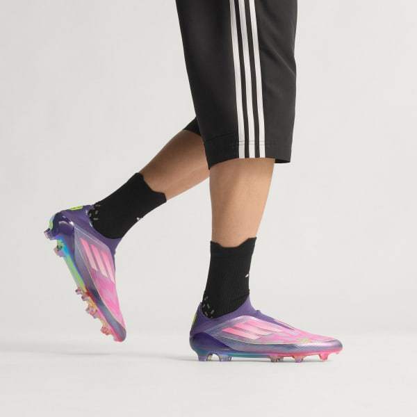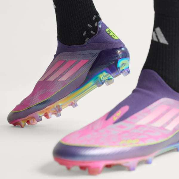 Find your fast to truly express yourself on the field. Feel the rush in adidas F50 cleats engineered for speed. These laceless Elite soccer cleats have a thin Fibertouch upper with an adidas PRIMEKNIT collar for lockdown and a Sprintweb 3D texture to help keep the ball close. The springy Sprintframe 360 outsole supports relentless pace. Lamine Yamal details show you learn from the best.