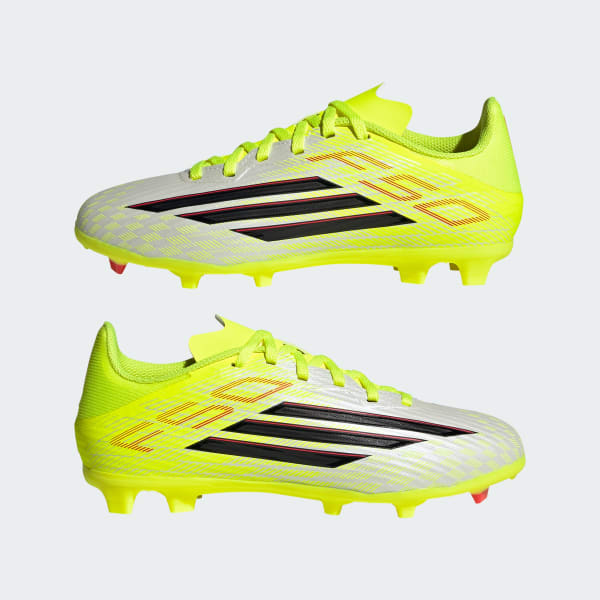 The F50 League Firm-Ground / Multi-Ground Soccer Cleats are crafted for young players ready to make their mark on the field. With a refreshed upper graphic, these cleats are crafted with both style and speed in mind.The Fiberskin Upper is designed to support ball control, while the floating tongue provides comfort and breathability. Sprintplate 360 technology offers an outsole with a combination of bladed and semi-conical studs, which can support speed and agility. These cleats are designed to keep up with the pace of the game on various surfaces. adidas continues to push the boundaries of performance and style, helping young players show confidence and flair on the field.