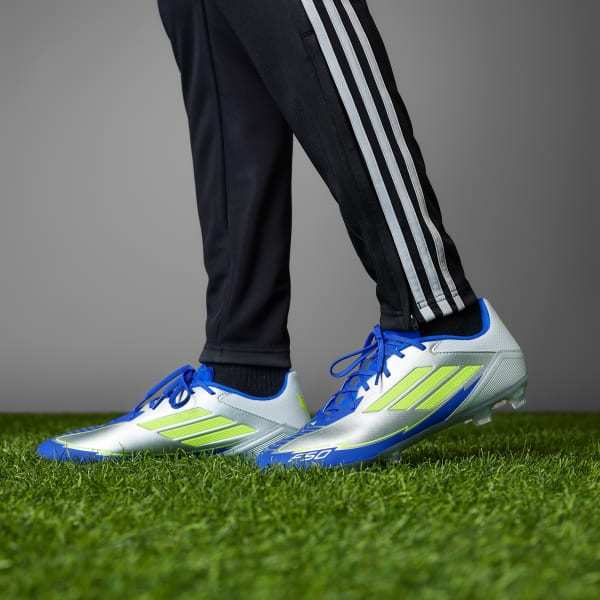 Legendary F50 pace. Mesmerizing Messi skills. Part of a range built to match the GOAT's on-field preferences, these adidas League soccer cleats have a flexible HybridTouch upper with a comfortable synthetic tongue. The versatile outsole offers propulsion on firm ground and artificial grass.This product features at least 20% recycled materials. By reusing materials that have already been created, we help to reduce waste and our reliance on finite resources and reduce the footprint of the products we make.