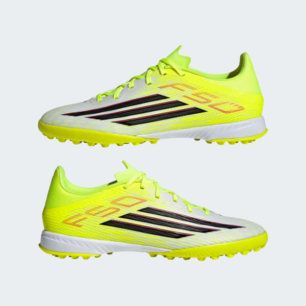 The F50 League Turf Soccer Shoes are designed to unleash game-changing speed. Crafted for those who live for the thrill of the game, they combine a lightweight sensation with precision engineering. Experience a secure and snug fit with the stretchy tunnel tongue construction, offering reliable lockdown at high speeds. The responsive EVA midsole provides extra comfort and the rubber outsole offers effective traction on astro turf and artificial pitches.Designed with a Fiberskin Upper with strategically placed 3D lines for durability and reliable ball touch. Adding a striking look to the shoes, the Sprintgrid 2D mudguard print visually emulates the design element from pinnacle pricepoints. Featuring adidas branding and the iconic F50 logo, these shoes are a testament to speed and performance. Whether you're training or playing in a match, make these your go-to companion each time you step onto the field.