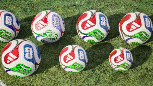 A small ball that borrows its flowing design from the tournament's official soccer ball.