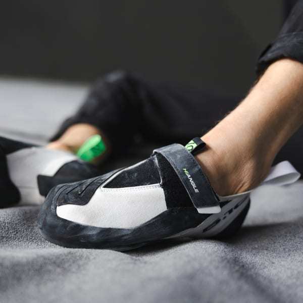 The Five Ten Hiangle Shoes are built for high-precision footwork. Enhanced rubber heel coverage gives you more friction on technical heel hooks. The divided split outsole offers optimal arch support and flexibility so you can adapt to any angle terrain with confidence at the gym or crag. Featuring a comfortable microfiber upper for a fit and feel that supports every route.