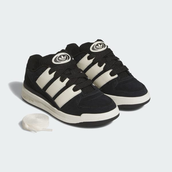 These juniors' adidas shoes bring back the energy of the new millennium. Their volume is turned way up, with an exaggerated upper, oversize 3-Stripes and a puffed tongue. The soft suede upper is detailed with smooth leather and finished with chunky laces. All this rides on a cupsole with a rubber outsole for grip.