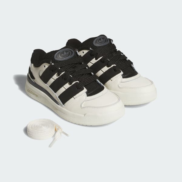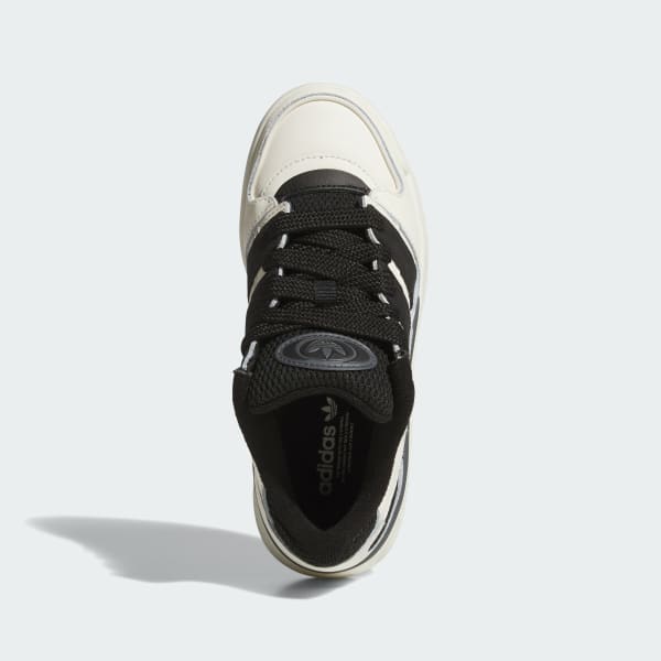 Forum shoes with exaggerated 3-Stripes, tongue and laces.