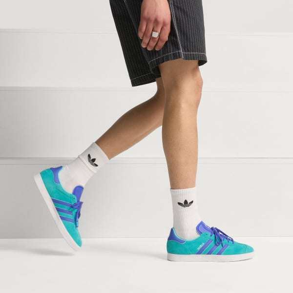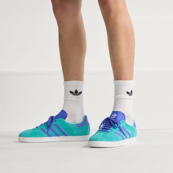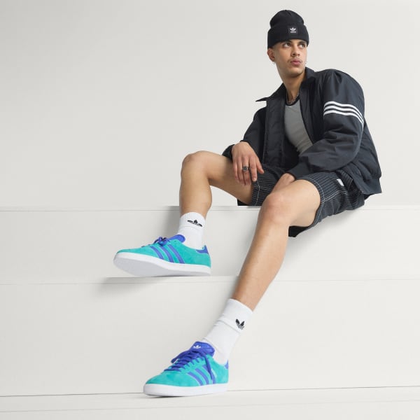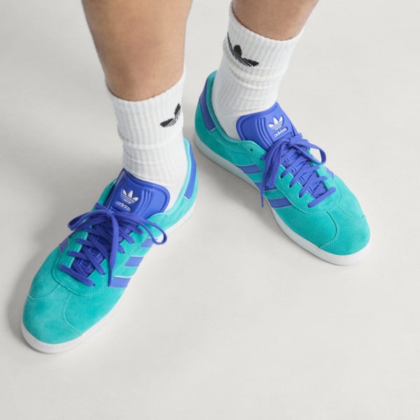 These adidas Gazelle shoes borrow their colors from Seattle Sounders FC's eye-catching third kit. Clad in signature suede and incorporating a T-toe and molded tongue, they'll keep you comfortable wherever your beautiful game takes you. A club badge on the heel tab finishes the look in soccer style.