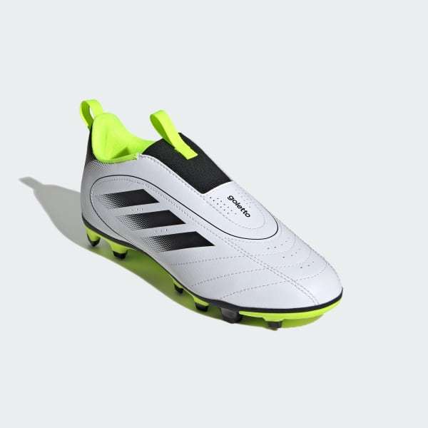 Pull on these juniors' adidas Goletto IX soccer cleats and get ready to shine on the pitch. Their soft synthetic upper features padding and perforations in just the right places so you stay comfortable on the move. On top, a laceless forefoot makes for a clean strike zone. Underneath, a versatile outsole keeps you quick on firm ground and artificial grass.This product features at least 20% recycled materials. By reusing materials that have already been created, we help to reduce waste and our reliance on finite resources and reduce the footprint of the products we make.
