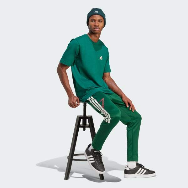 These adidas pants put your love for football on display with pitch-inspired style and vibrant blocks of color. Side-zip pockets give you a place to stash your essentials. Zips at the ankle make the pants easy to pull on and off over shoes. By choosing recycled, we are able to reuse materials that have already been created, which helps to reduce waste. Renewable materials choices will help us to remove our reliance on finite resources. Our products made with a blend of recycled and renewable materials feature at least 70% total of these materials.
