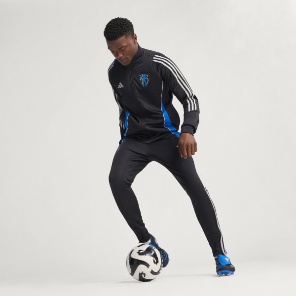 Whether you're watching Jude Bellingham pull strings in midfield or pushing yourself in training, this adidas jacket will keep you comfortable. Its slim fit and moisture-managing AEROREADY ensure nothing distracts you from your goals. A Bellingham logo on the chest shows you back one of soccer's brightest talents.