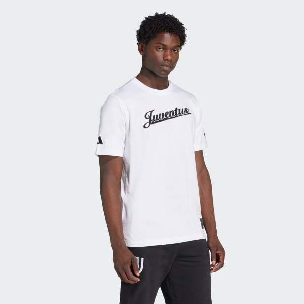 Baseball meets soccer in the standout design of this adidas Juventus tee. Its soft single jersey fabric will keep you comfortable whether you're cheering from the stands or kicking back at home. Joining a club badge, that stylized team name on the chest ensures your fandom hits home.