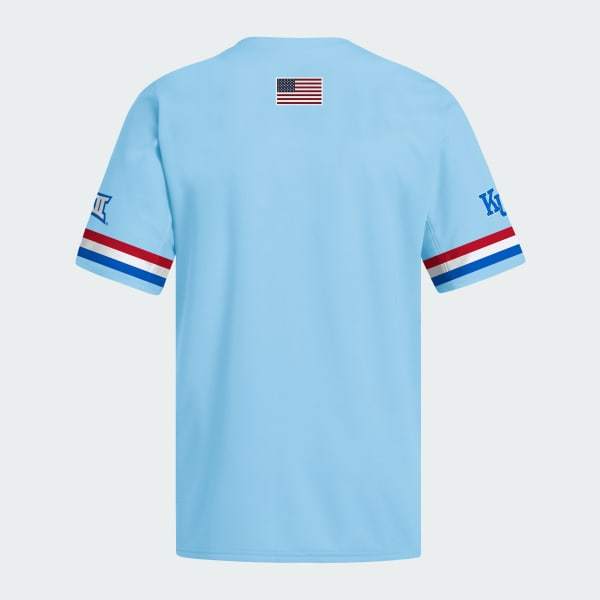 Style meets performance with the Kansas Light Blue Full Button Jersey. Inspired by the classic baseball aesthetic, it is designed for those who appreciate contemporary fashion with a timeless twist.Crafted from a pique fabric, the jersey offers a comfortable fit that’s not too tight or too loose. The button placket adds a touch of tradition, making it a stylish option for casual outings or team events. Part of adidas' NCAA licensed collection, this piece celebrates baseball whilst giving a nod to the classics. Whether you're at a community league or a weekend outing, this jersey offers both style and comfort.