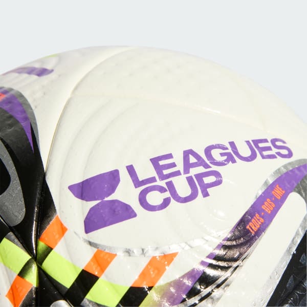 Three countries, two leagues, one winner. Displaying tournament colors and a trophy graphic, this is the adidas soccer you'll see on the field during the fifth edition of the Leagues Cup. Subtle details in English, French and Spanish complete a look designed to stand out. Its seamless build and high-grade butyl bladder have earned this Pro ball FIFA's top rating.