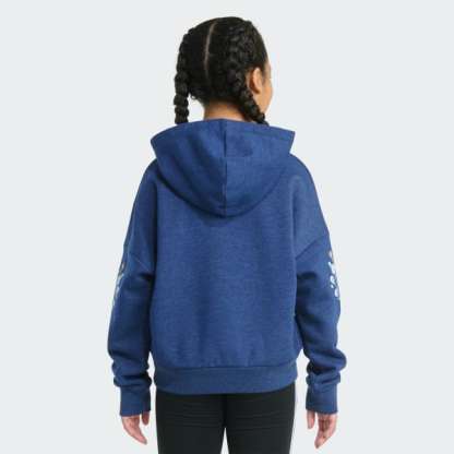 Cozy comfort meets cool style in this girls' adidas hoodie. The loose cut gives kids room to move, while the soft cotton-blend fleece fabric feels great all day. Fun graphics add a playful touch.