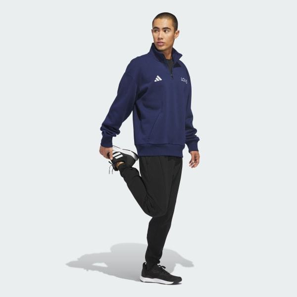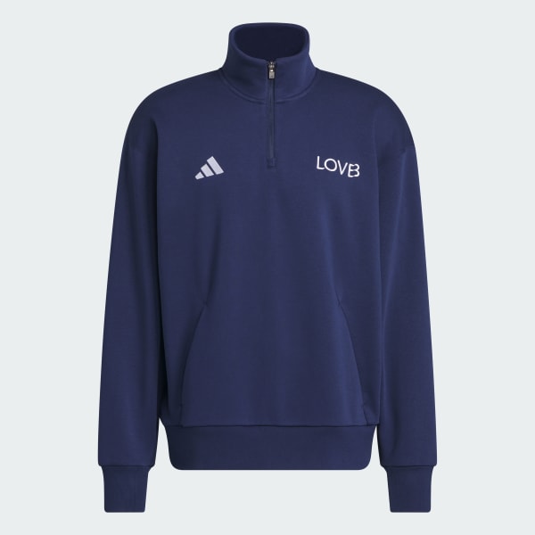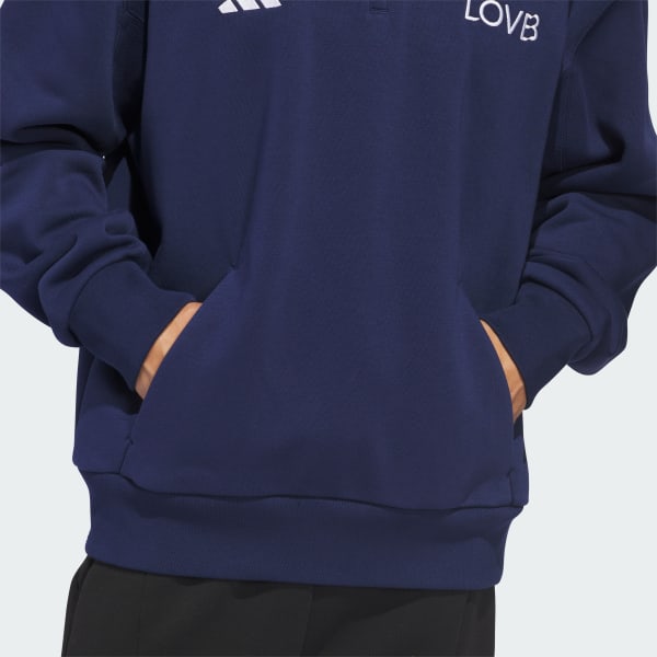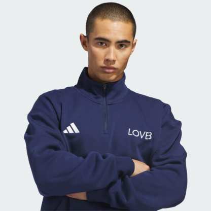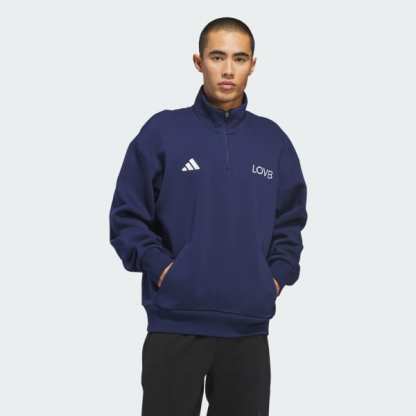 Bring adidas style and performance to the volleyball court with the LOVB Fleece Graphics Quarter-Zip. Designed with a classic athletic silhouette, it's made from a soft fleece blend and features a loose fit for comfort during warm-ups, training, or supporting from the sidelines.The quarter-zip neckline offers adjustable ventilation and easy styling, while the cozy fleece and layer-friendly design make it a reliable option before and after sessions. Inspired by the energy and movement of volleyball, this piece blends everyday ease with a sporty edge. Wear it to practice, on the way to the gym, or during downtime — a simple, versatile layer built for active days.