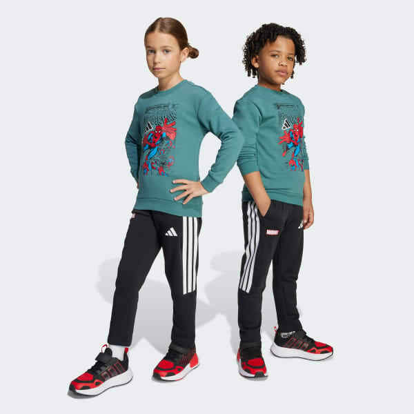 Just like Spider-Man, your young superhero is always on the go. This kids' jogger and crewneck set from adidas is made to keep up with every adventure. Soft French terry fabric provides all-day comfort, whether they're practicing their web-slinging skills or just hanging out at home. A comic book-like Spider-Man graphic on the front shows some love for their favorite hero.