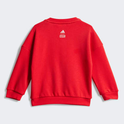 Dress your little one up for the day's adventures in this adidas Marvel jogger and crewneck set for infants. The set includes a French terry crewneck top plus a pair of matching pants. It has a cool Spider-Man graphic on the front and iconic 3-Stripes along the legs.