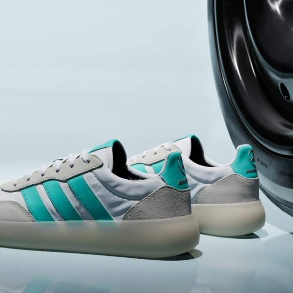 Embrace the future of motorsport style with the Mercedes - AMG Petronas Formula One Team Barreda Decode Shoes: a terrace-inspired design for modern wearers.The T-toe design seamlessly blends heritage with modern flair, making them a great addition to your collection. The combination of suede and durable nylon offers a distinctive blend.The cupsole construction enhances comfort, providing a contemporary look that stands out. Lace up for a secure fit that adjusts to your needs.Whether you're strolling through the city or making a statement at an event, these adidas shoes are your go-to choice for effortless style and comfort.