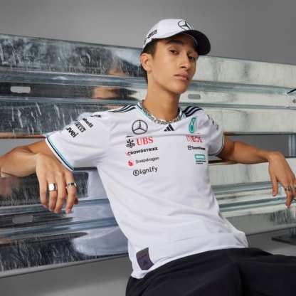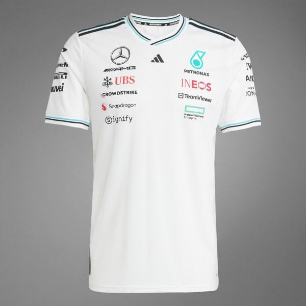 Look and feel like you're ready to take the wheel in this driver jersey from adidas. Built just like the ones worn on race day, this jersey features AEROREADY to manage moisture, providing both outstanding performance and elevated comfort. Mercedes - AMG Petronas Formula One Team logo branding and sponsor logos make the look authentic, while 3-Stripes on the shoulders and the 3 Bar Logo on the chest offer a signature adidas signoff.This product is made with 100% recycled materials. By reusing materials that have already been created, we help to reduce waste and our reliance on finite resources and reduce the footprint of the products we make.
