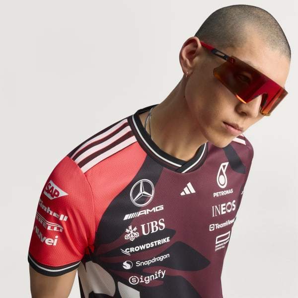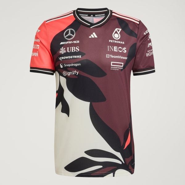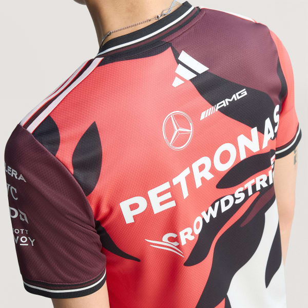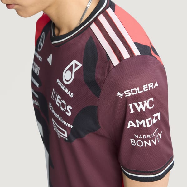 Feel the rush of race day with this Mercedes - AMG Petronas Formula One Team driver authentic jersey from adidas Motorsport. Inspired by the kit worn by your favorite drivers, this short sleeve jersey blends performance and comfort. AEROREADY manages moisture to keep you cool even as the action heats up. Mercedes - AMG Petronas Formula One Team logos and sponsor logos make the look official.