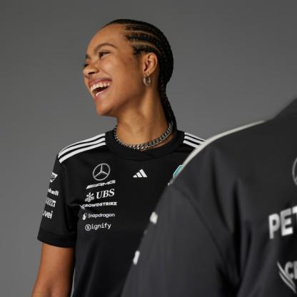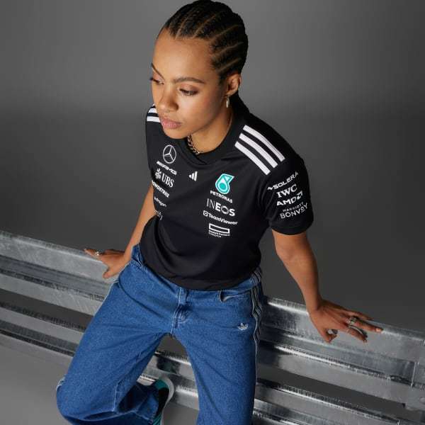 Bring the racetrack home with this sleek Mercedes - AMG Petronas Formula One Team jersey from adidas Motorsports. With its smooth interlock fabric, this top keeps you cool and comfortable whether you're watching the race from the stands or in your living room. The prominent team and sponsor logos on the front let everyone know which drivers you support while moisture-managing AEROREADY draws sweat away from your skin.This product is made with 100% recycled materials. By reusing materials that have already been created, we help to reduce waste and our reliance on finite resources and reduce the footprint of the products we make.