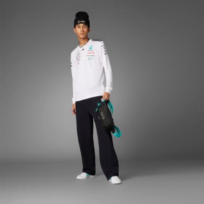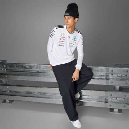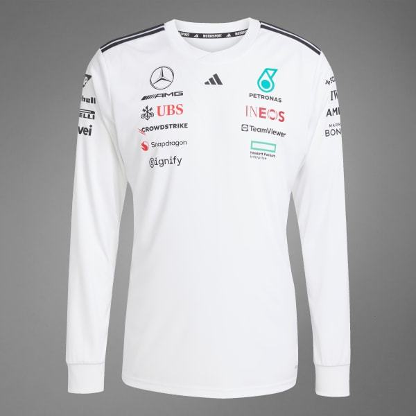 Look and feel like you're ready to take the wheel in this long sleeve driver jersey from adidas. Built just like the ones worn on race day, this jersey features AEROREADY to manage moisture, providing both outstanding performance and elevated comfort. Mercedes - AMG Petronas Formula One Team logo branding and sponsor logos make the look authentic, while 3-Stripes on the shoulders and the 3 Bar Logo on the chest offer a signature adidas signoff.This product is made with 100% recycled materials. By reusing materials that have already been created, we help to reduce waste and our reliance on finite resources and reduce the footprint of the products we make.