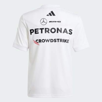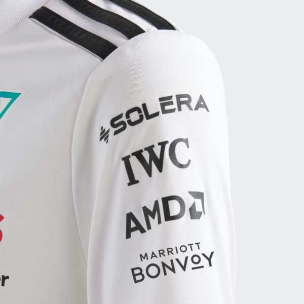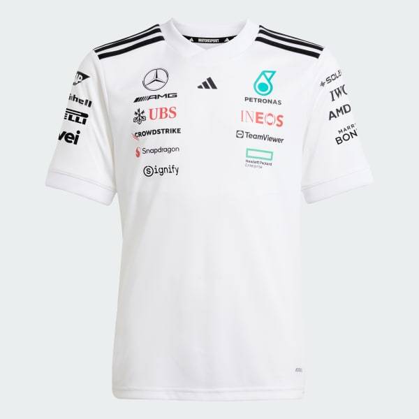 They might be too young to drive, but that doesn't mean they can't cheer their favourite team on to victory in this kids' driver jersey from adidas Motorsports. Featuring AEROREADY to manage moisture, this jersey provides elevated performance and outstanding comfort. Mercedes - AMG Petronas Formula One Team logo branding, sponsor logos and adidas branding make the look totally authentic.This product is made with 100% recycled materials. By reusing materials that have already been created, we help to reduce waste and our reliance on finite resources and reduce the footprint of the products we make.