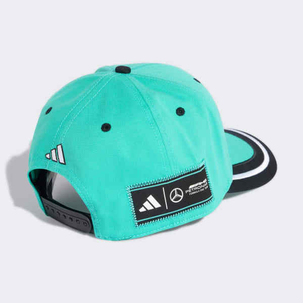 Celebrate the world of Grand Prix with the adidas Mercedes-AMG Petronas Formula One Team Las Vegas Snapback Cap. Crafted for the motorsport enthusiast, this cap is a statement of passion and allegiance. With its bold Mercedes embroidery on the front panel, it captures the thrill of the Las Vegas Grand Prix, making it a must-have for racing fans. Embrace the race and show your support for your team. The cap features a snapback closure for a comfortable fit. It has sweat wicking and quick dry engineering in high sweat zones, great for those long days at the track or casual days out in the sunshine. Whether cheering the drivers from the stands or enjoying a day out, this exclusive cap is designed to keep you stylish and comfortable. More than an accessory, it's a declaration of your passion for the track.