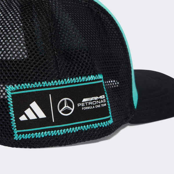 The Mercedes-AMG Petronas Formula One Team Las Vegas Trucker Cap is your ticket to style and performance. Designed for the ultimate motorsport fan, this cap combines the classic trucker style with modern flair.With mesh panels for breathability and a snapback closure for an adjustable fit, this cap is ready for adventure. Whether you're at the track or out on the town, it's designed to keep you feeling cool and comfortable.The star on the front panel is a nod to the Mercedes legacy, making the cap a must-have for fans and drivers alike. The medium curved visor adds a contemporary touch, so you can pair it with a range of outfits and stay on trend.Crafted with precision and passion, this trucker cap is more than just headwear. It's a statement of dedication to the sport. Join the race and embrace the thrill with adidas.