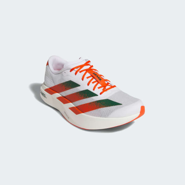 Reach new heights with the Miami Hurricanes Adizero EVO SL shoes, inspired by the record-breaking EVO 1. These shoes are designed for those who crave speed and performance. Light. Speed. adidas LightstrikePro is redefining the next generation of speed with a super-light midsole designed for dynamic, lightweight movement. The textile and synthetic upper provides a snug, supportive fit, while the rubber outsole delivers reliable traction on various surfaces. Lace up and feel the difference as you take on your next race or training session.adidas has crafted these shoes with precision, keeping you feeling comfortable and focused on your goals. This high-performance footwear is more than just a shoe, it's your partner in achieving your personal best.
