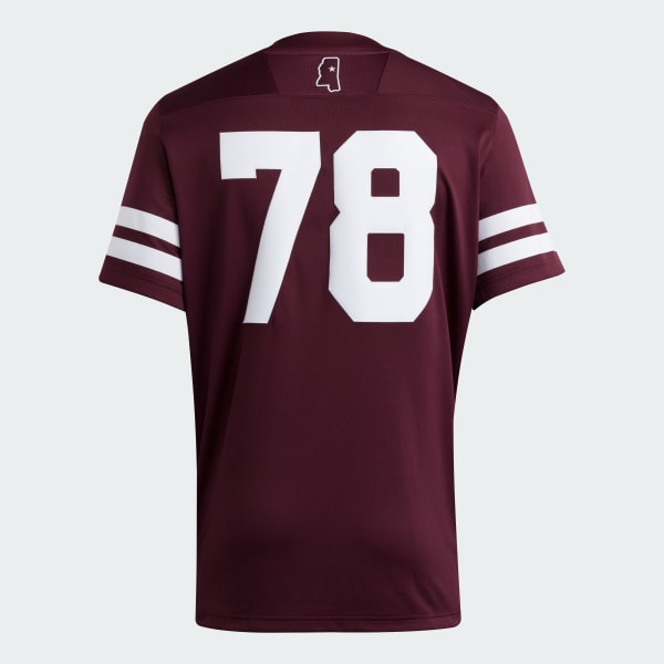 Rep your Bulldogs colors with pride in this official home football jersey from adidas. It's designed for maximum comfort on game days, with a roomy, relaxed fit and lightweight fabric that keeps you cool when the action heats up. Mississippi State graphics and bold lettering show everyone where your loyalties lie.