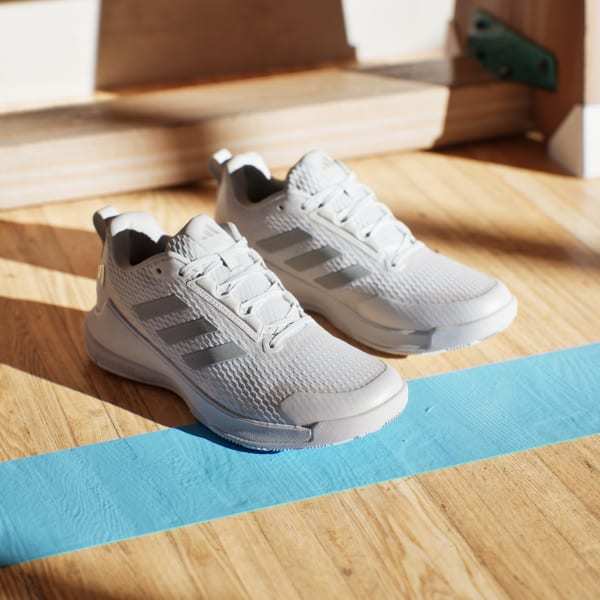 Designed for indoor athletes, these adidas shoes provide the support to match your competitive fire. A soft upper with a padded tongue and collar keeps your foot wrapped in comfort during intense play. An EVA midsole provides lightweight cushioning while a Lightstrike heel insert supports your dynamic movements. The non-marking Adiwear outsole delivers traction that grips without leaving marks so you can focus on the action.This product features at least 20% recycled materials. By reusing materials that have already been created, we help to reduce waste and our reliance on finite resources and reduce the footprint of the products we make.