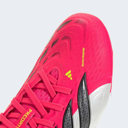 Play with confidence in the Predator Elite Firm Ground soccer cleats. Designed to empower young players, these shoes are crafted with innovative Nanostrike technology to support precision and control in front of goal.The Nanostrike Pro feature offers a reimagined synergy between fit and grip, combining innovative mesh for softness and lightness with integrated haptic areas for striking precision.Strikeframe provides a lightweight full-length plate with traction for goal scoring. Additionally, the Powerspine technology offers iconic adidas Predator tech for midfoot stability, which can support strong shots at goal.Lace up with ease thanks to the laced floating tongue, which makes these shoes easy to step into and adjust. Whether it's for playtime or training, these shoes are designed to fit an active lifestyle.