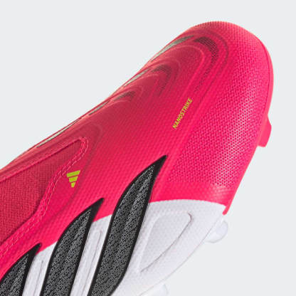 The Predator League Laceless Firm Ground soccer cleats are designed with performance in mind, with the Strikeframe lightweight full-length plate providing traction for goal-scoring.The innovative Nanostrike upper offers extra softness and lightness, helping you stay agile and precise, while Powerspine technology is integrated into the midfoot, offering stability and power for stronger hits.Crafted for firm ground surfaces, these shoes feature a laceless design for a sleek and secure fit. With these soccer shoes, adidas offers comfort and precision on the field.